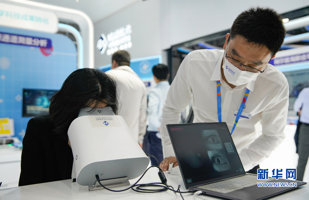 一款搭載AI智能健康風險評估技術的眼底照相機,可通過眼部的“掃描體檢”,檢測身體疾病?!⌒氯A網(wǎng) 蔣巧玲 攝