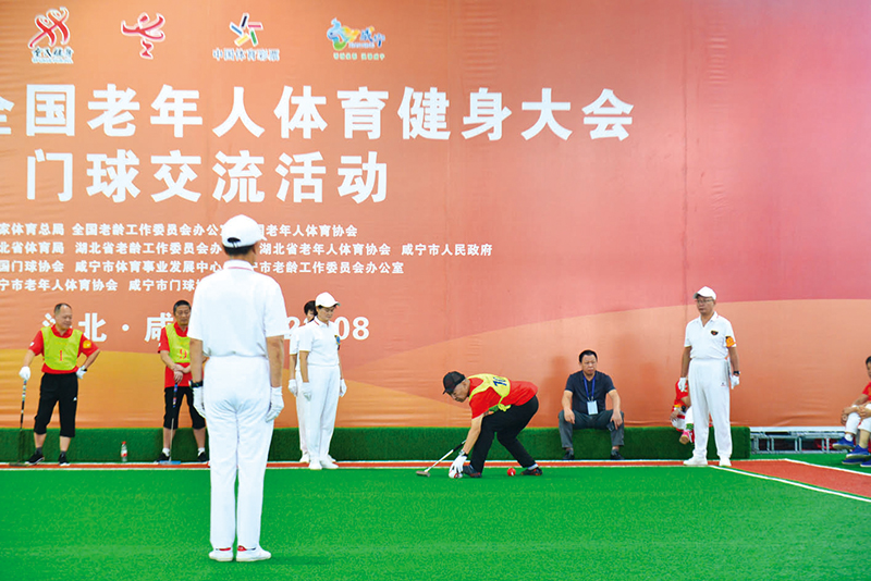 咸寧網(wǎng)訊(記者 吳青朋 ) 8月3日,第四屆全國(guó)老年人體育健身大會(huì)門(mén)球交流活動(dòng)在我市開(kāi)幕,來(lái)自北京、上海、廣東、香港、江蘇、浙江、天津、河南、福建、海南、內(nèi)蒙古、河北、安徽、深圳等全國(guó)36支隊(duì)伍、387名門(mén)球運(yùn)動(dòng)員齊聚香城泉都,共享門(mén)球盛會(huì)。