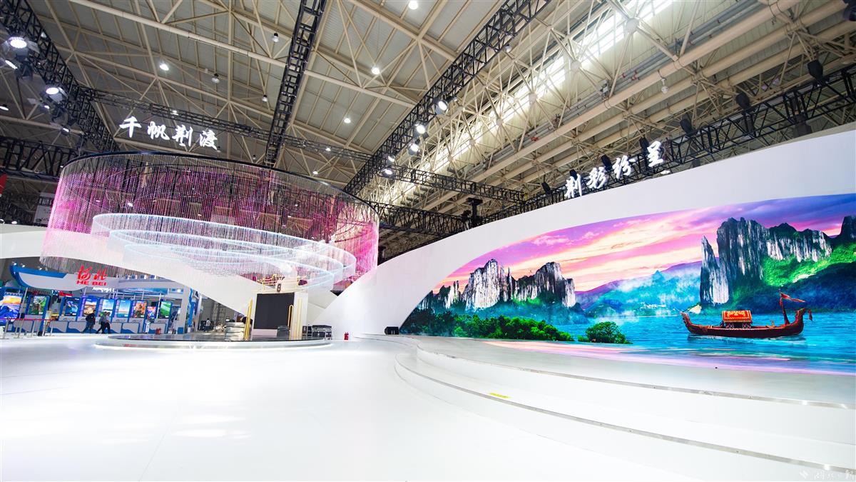 2023年4月20日,在第二屆中國(武漢)文旅博覽會主會場—武漢國際博覽中心,8萬平方米的展區(qū)均已完成施工,以“山水之音相會湖北”為主題的湖北館攜多個省市場館一同驚艷亮相,靜待迎客。