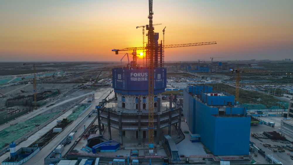 沐浴著金秋的晨光,雄安新區(qū)啟動(dòng)區(qū)里的中國(guó)中化總部基地建設(shè)現(xiàn)場(chǎng)塔吊高矗,八角形造型已輪廓初顯。這座大樓采用白洋淀“金蘆葦”設(shè)計(jì)理念,寓意生生不息、繁茂生長(zhǎng)。