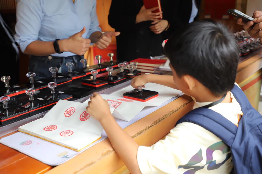 為增加游客的文化體驗(yàn)感和參與度,山東曲阜“三孔”景區(qū)推出“打卡蓋章游景區(qū)”活動(dòng)。游客購買蓋章冊(cè)后,可在各景點(diǎn)打卡、收集包括大成殿、杏壇等主要建筑物以及匾額樣式在內(nèi)的專屬印章。身著漢服的北京游客王銘進(jìn)入孔廟景區(qū)后,興致勃勃地開啟了一場(chǎng)“印章打卡”之旅,“我對(duì)傳統(tǒng)文化非常感興趣,用印章記錄下這場(chǎng)孔子故里游,感覺很有意義”。