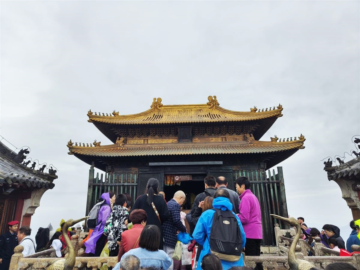 游客在金頂排隊(duì)合影留念 ? ?攝影:楚天都市報(bào)極目新聞通訊員徐剛