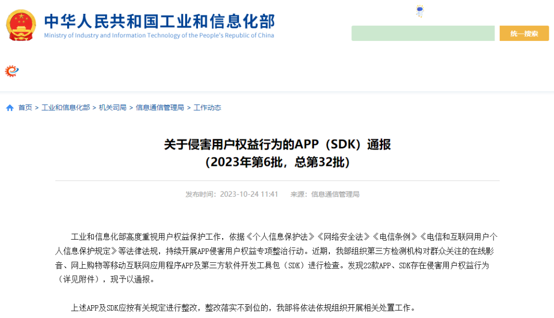 工業(yè)和信息化部通報(bào)存在問(wèn)題的APP(SDK)名單
