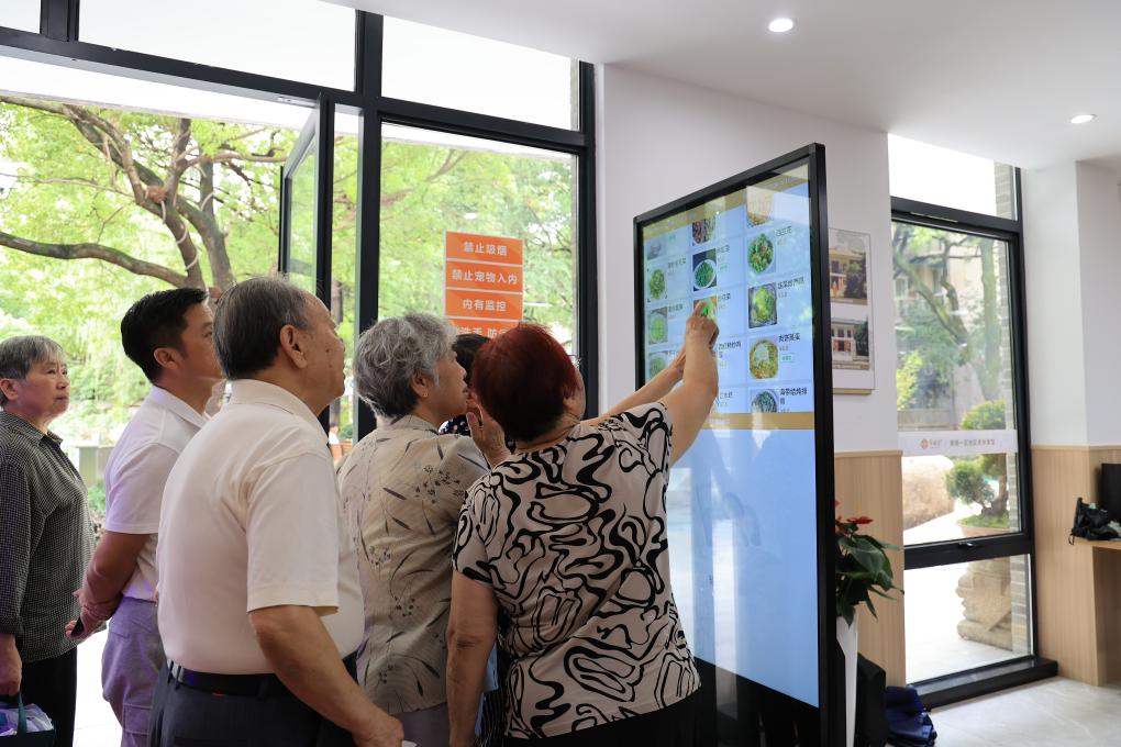 “陳老師,你今天不宜吃海鮮和豆制品,一會兒別忘了?!薄袄仙?,你少吃點重口味的菜,最近是不是血壓又高了?”幾位老人對著屏幕上的用餐建議,彼此提醒著。