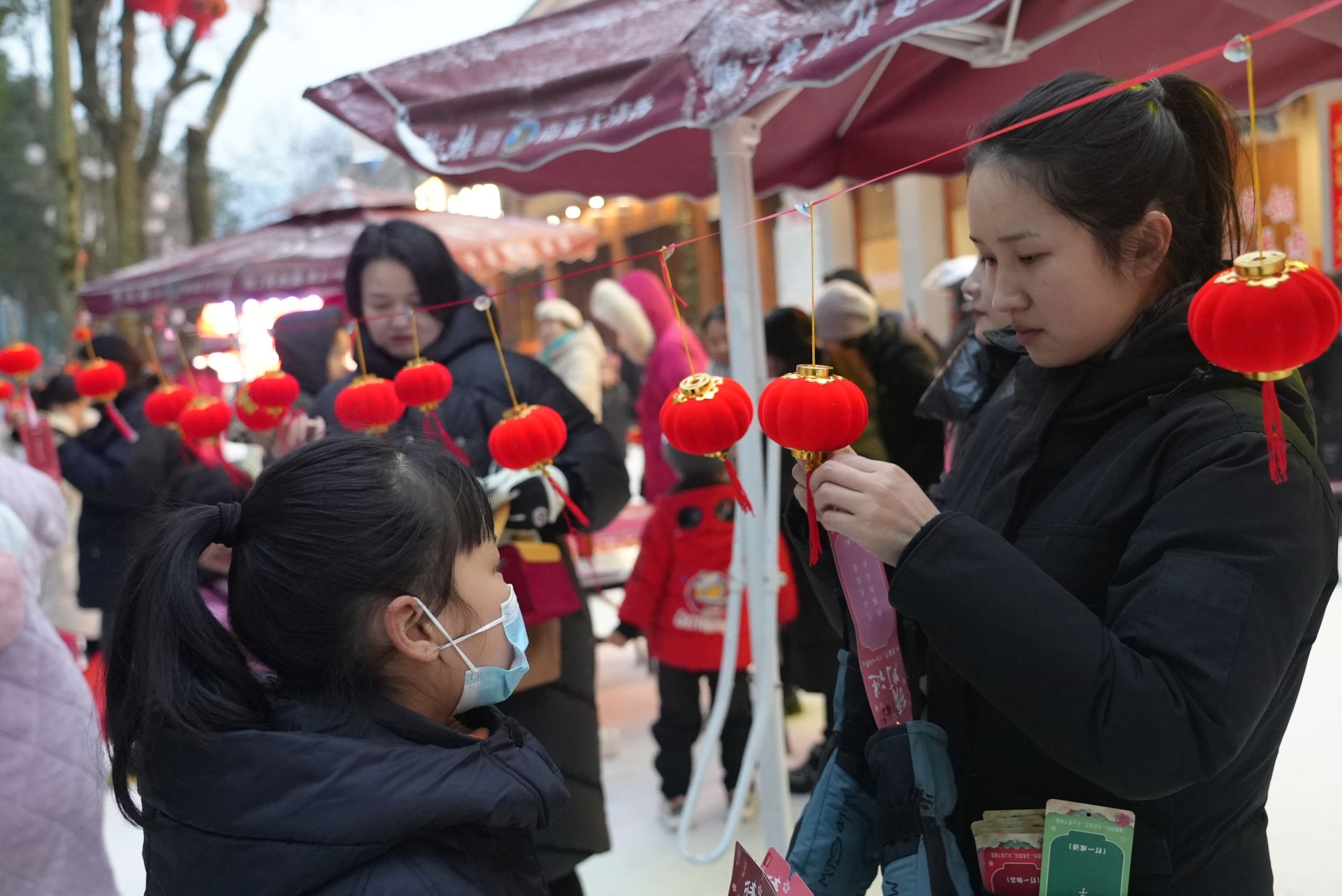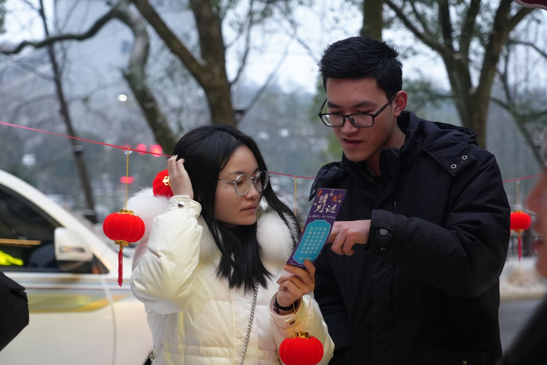 2月24日,正月十五,溫泉街道月亮灣活力街區(qū)紅燈籠高掛,人聲鼎沸,歡歌陣陣,由市城管執(zhí)法委、市文化和旅游局聯(lián)合溫泉街道辦事處舉辦的猜燈謎、鬧元宵活動如期而至,讓整片街區(qū)在一場大雪后重燃“煙火氣”。