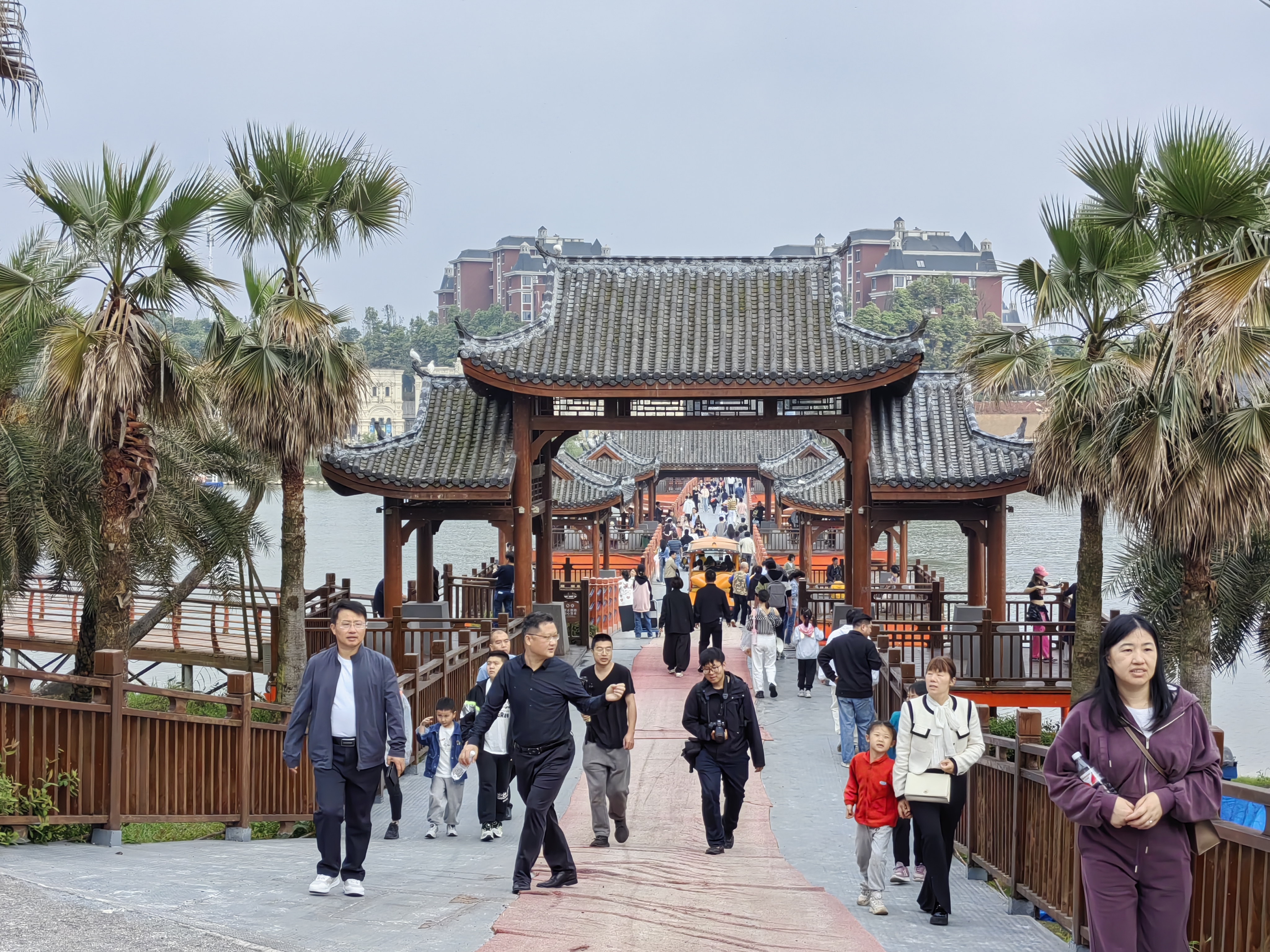 據(jù)了解,五一假期首日,蜜泉湖旅游度假區(qū)和戀江湖·嘉魚不夜城景區(qū)入園人數(shù)分別達(dá)到10000人。