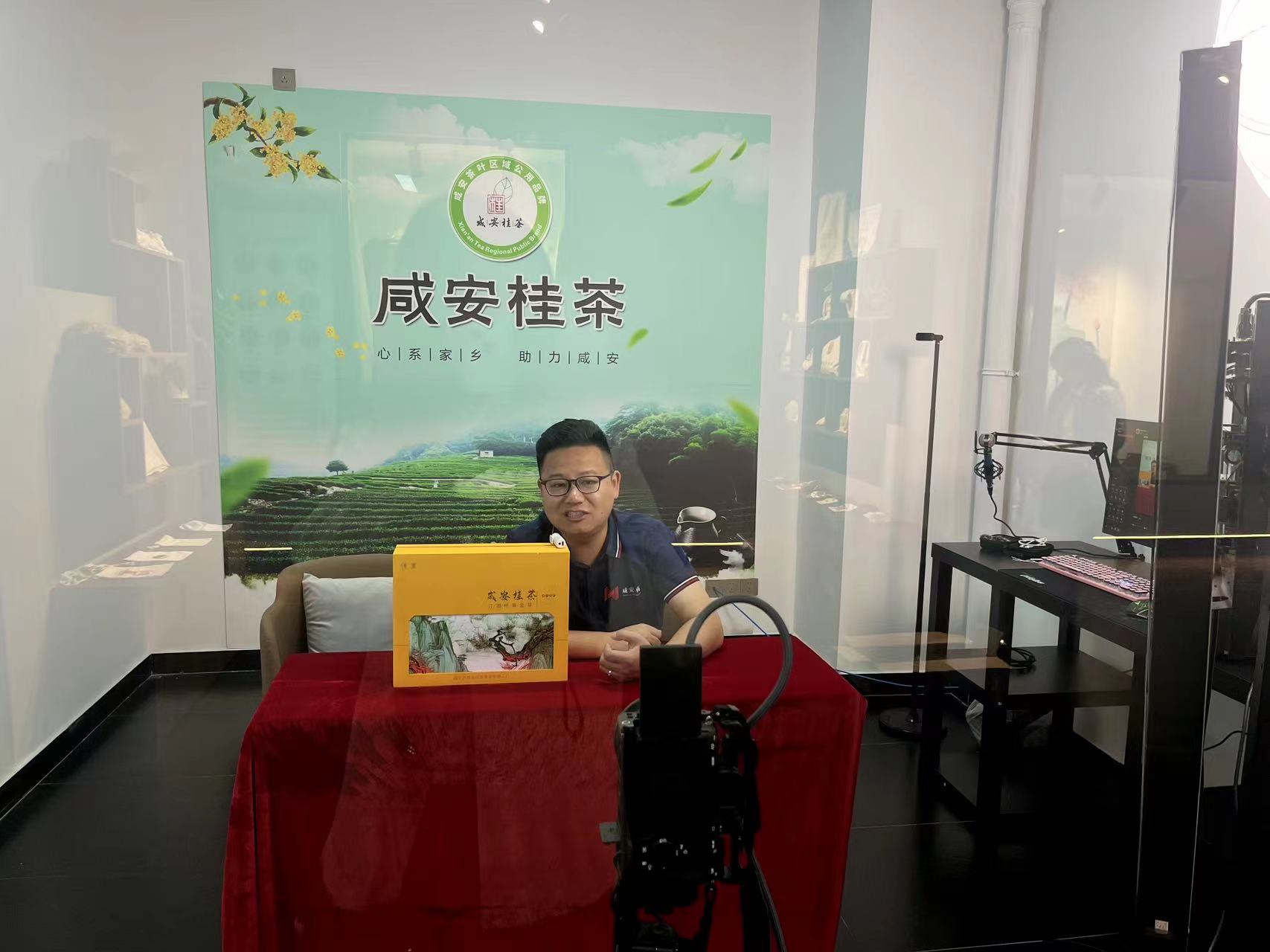 “我現(xiàn)在手上的產(chǎn)品是咱們咸安區(qū)雙溪橋鎮(zhèn)楊堡村產(chǎn)的桂花生姜茶,是綠色優(yōu)質(zhì)富硒產(chǎn)品……”90后“網(wǎng)紅”主播萬里正在對著鏡頭火熱帶貨。