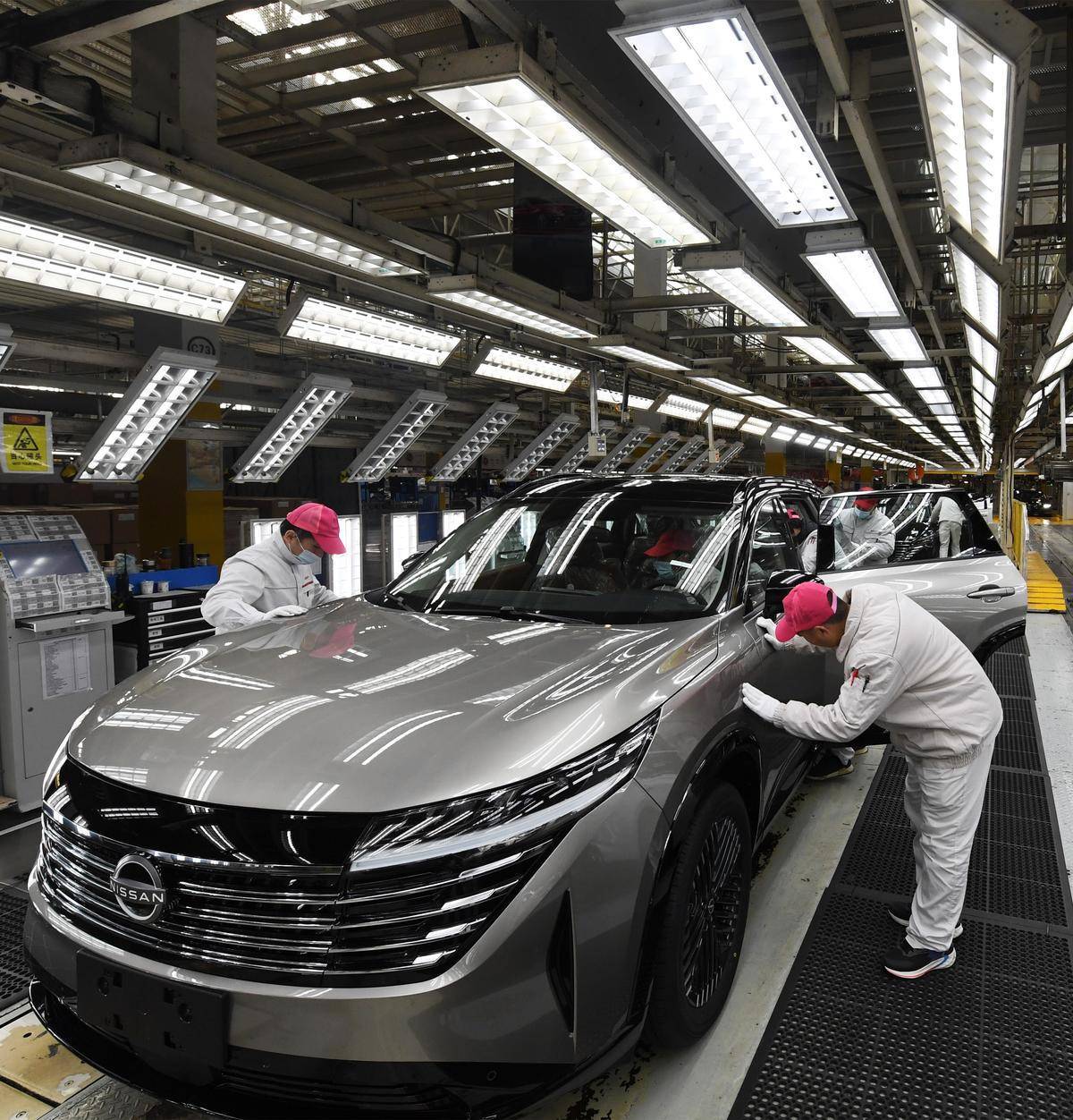 東風(fēng)日產(chǎn)襄陽(yáng)工廠檢測(cè)線上,全新大家庭旗艦SUV“探陸”進(jìn)行量產(chǎn)。(湖北日?qǐng)?bào)全媒記者田悅 通訊員 趙靜怡 攝)