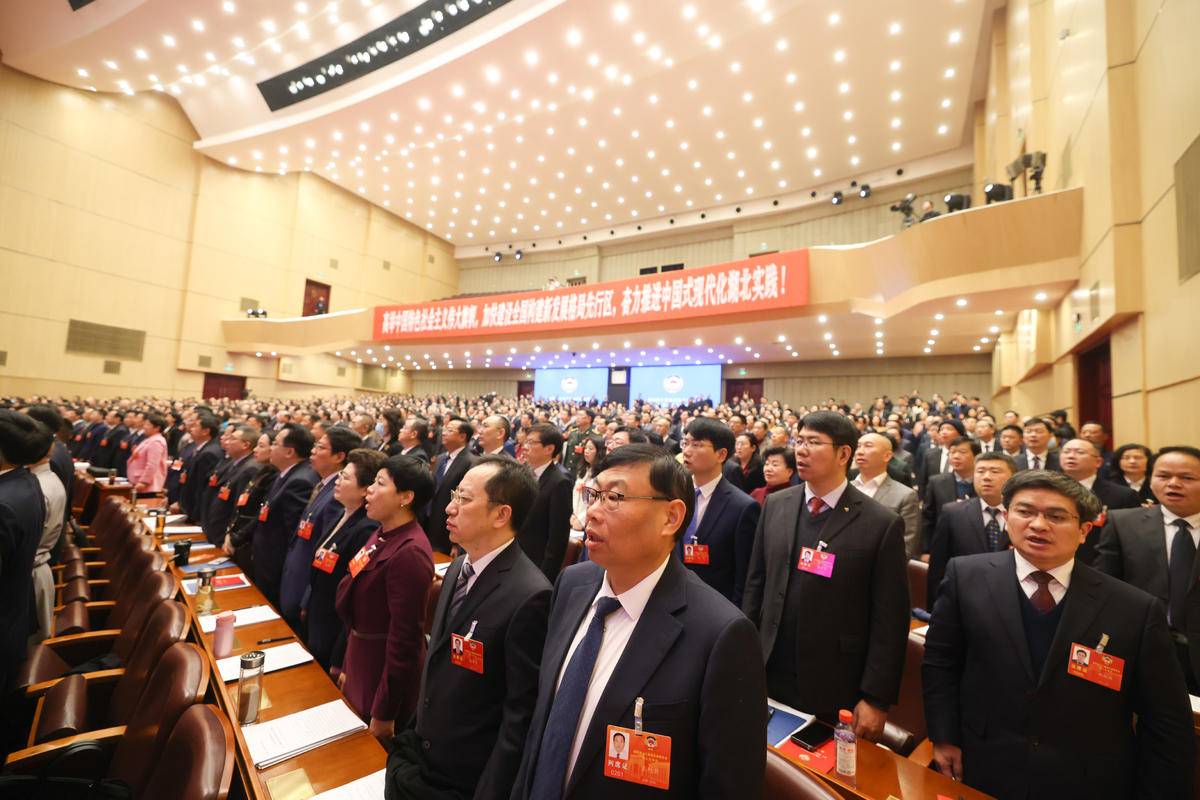 省政協(xié)十二屆五次會(huì)議開(kāi)幕大會(huì)現(xiàn)場(chǎng)。今日上午9時(shí),中國(guó)人民政治協(xié)商會(huì)議湖北省第十二屆委員會(huì)第五次會(huì)議在武漢開(kāi)幕。