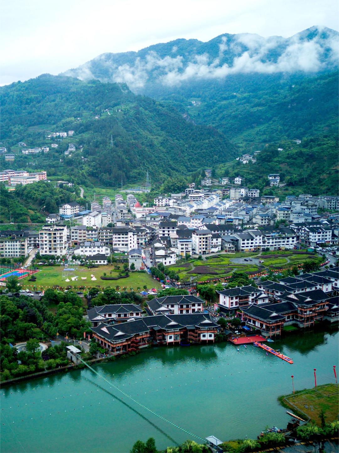 帶水河流域內(nèi)的龍馬風(fēng)情小鎮(zhèn)。(通訊員 田代明 攝)