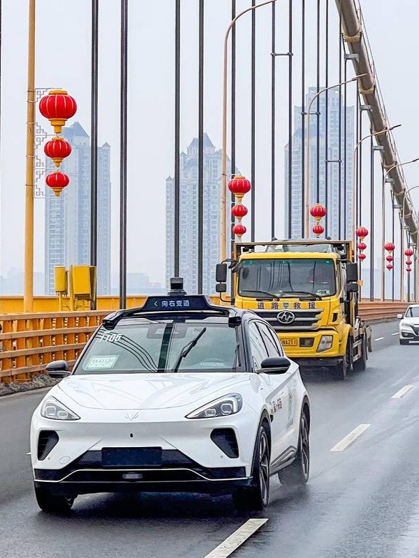今年2月27日,“蘿卜快跑”全無人自動(dòng)駕駛汽車首次實(shí)現(xiàn)跨江出行,武漢也成為全國首個(gè)實(shí)現(xiàn)智能網(wǎng)聯(lián)汽車橫跨長江貫通示范運(yùn)營的城市。(湖北日?qǐng)?bào)全媒記者 倪娜 攝)