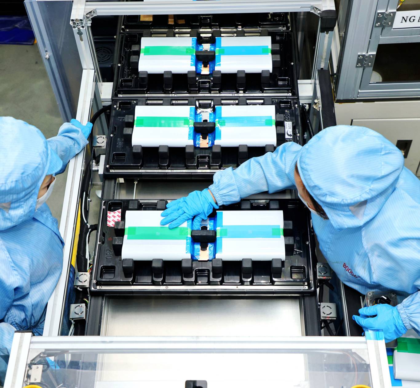 位于十堰市張灣區(qū)的遠(yuǎn)景動(dòng)力零碳智能電池產(chǎn)業(yè)園一期項(xiàng)目新能源電池制造車間,工人在生產(chǎn)線上操作智能設(shè)備。(視界網(wǎng))