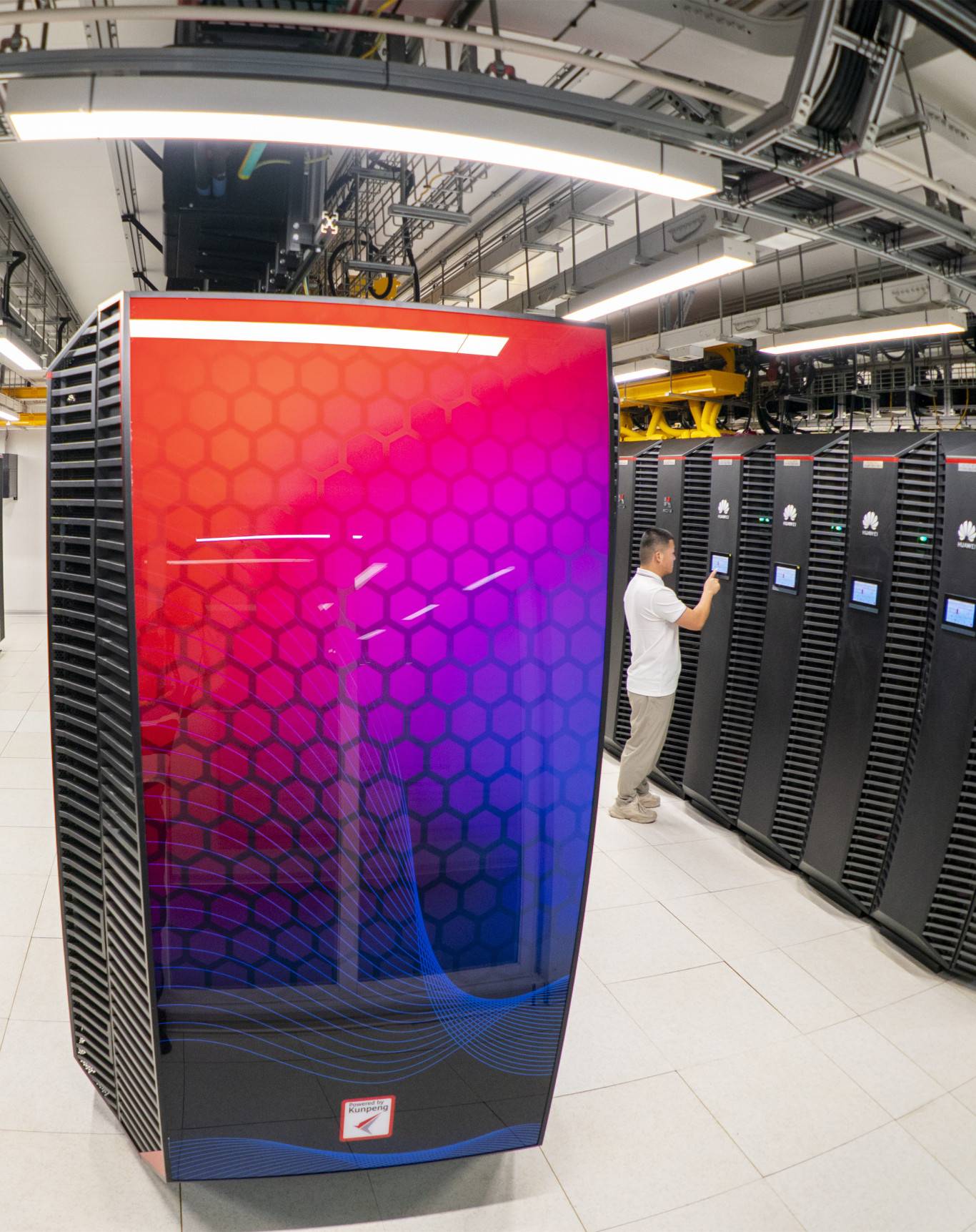 武漢超算中心機(jī)房,技術(shù)人員在巡控服務(wù)器機(jī)房。(湖北日?qǐng)?bào)全媒記者 魏錸 攝)