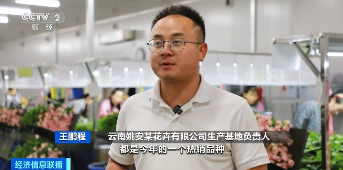 云南姚安某花卉有限公司生產(chǎn)基地負(fù)責(zé)人 王鵬程:比如粉紅雪山玫瑰和白雪山玫瑰,都是今年的一個(gè)熱銷品種,價(jià)格也是突破了2元一枝,供不應(yīng)求?!?/p>
