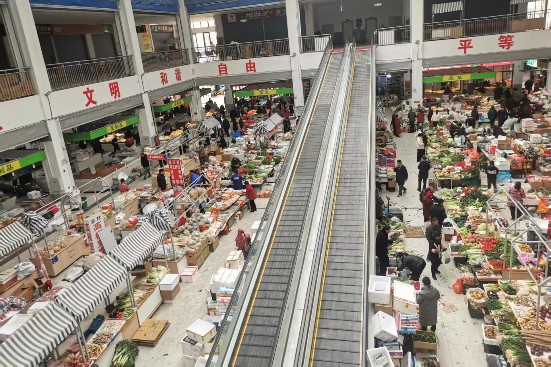 據(jù)了解,通城縣鄂南農(nóng)貿(mào)大市場于2024年1月3日正式投入運營,是承接城區(qū)內(nèi)老舊農(nóng)貿(mào)市場搬遷并整合周邊縣市優(yōu)質(zhì)農(nóng)產(chǎn)品批發(fā)銷售的重點民生工程。總占地面積128畝,總建筑面積約10萬平方米,分農(nóng)產(chǎn)品零售樓、批發(fā)市場和冷庫三期工程建設(shè),內(nèi)部布局合理、環(huán)境整潔,針對蔬菜、肉類、水產(chǎn)、家禽、水果等區(qū)域進(jìn)行了劃分,并配套了室外停車場。
