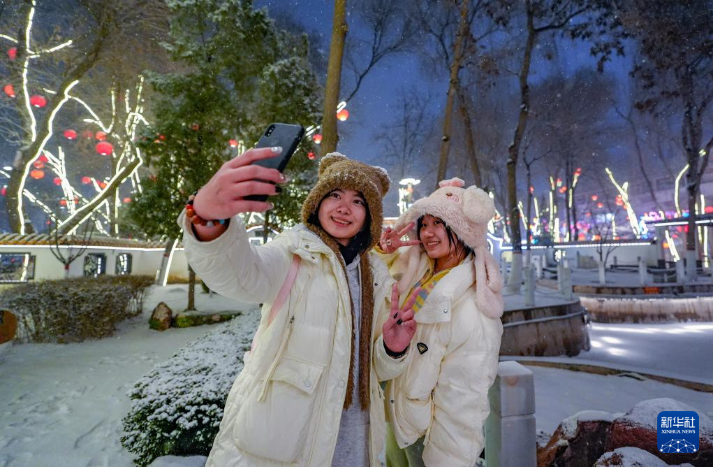 1月24日,游客在寧夏銀川寧園公園拍照留念。