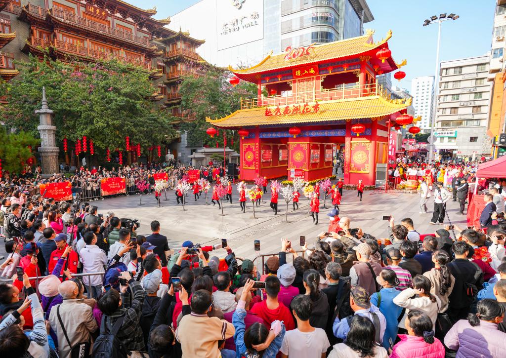 新華社廣州1月28日電(記者陸浩)廣東地域廣闊,廣府、潮汕、客家等文化在這里交匯,孕育出了豐富多樣的民俗活動(dòng)和節(jié)慶活動(dòng)。蛇年春節(jié)的喜慶氛圍中,花市、英歌舞、舞火龍等數(shù)千場(chǎng)活動(dòng)悉數(shù)登臺(tái),共同演繹出獨(dú)特的廣東年味。