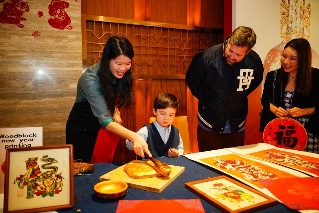 1月18日,劉鐘萍帶領(lǐng)外國小朋友體驗(yàn)佛山木版年畫。新華社發(fā)