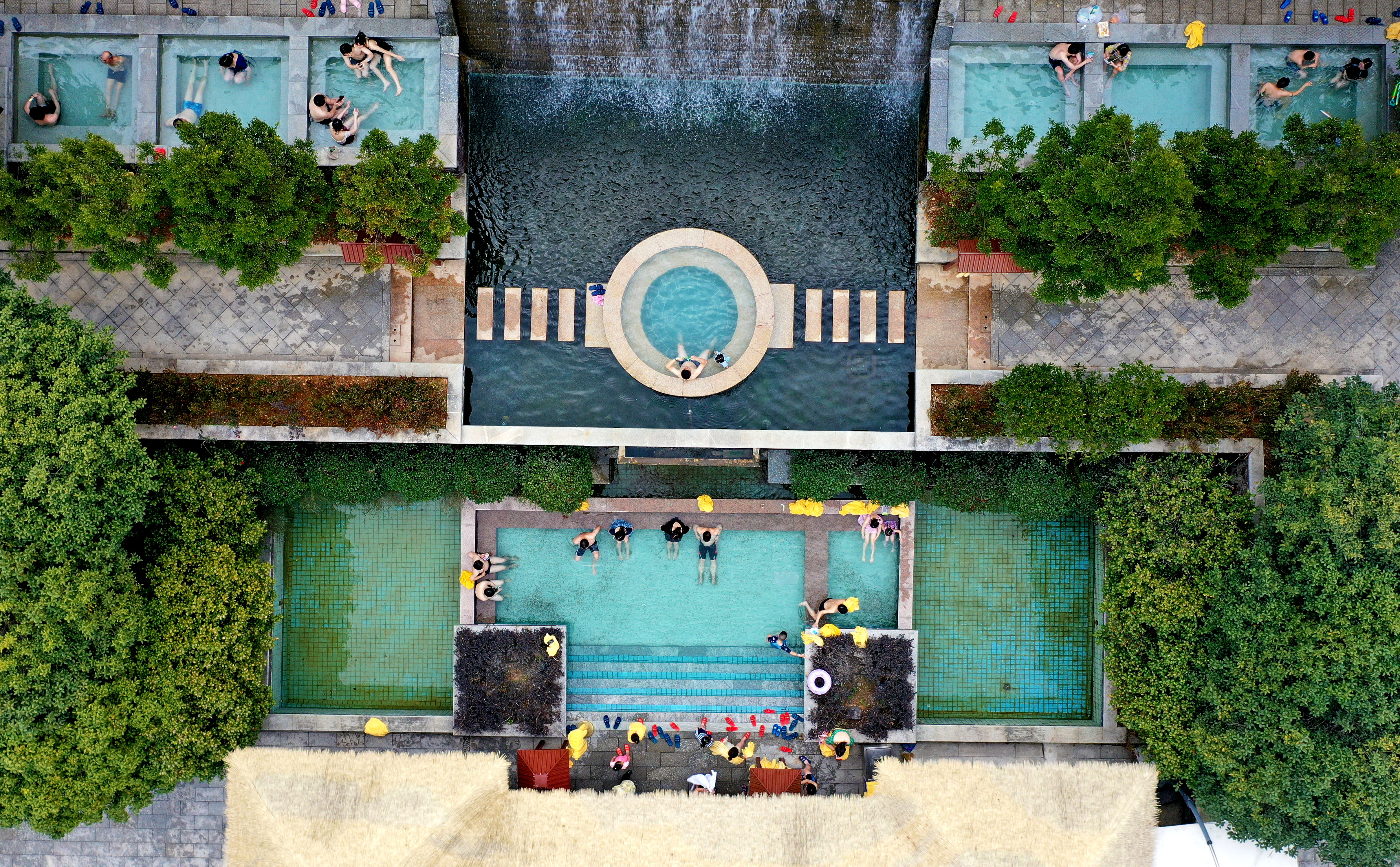 景區(qū)也積極推出各種特色泡池,滿足不同游客的需求。不少游客全家出動,老人們在溫泉中舒展身體,享受愜意時光,孩子們則在水上娛樂區(qū)嬉笑玩耍,不亦樂乎。