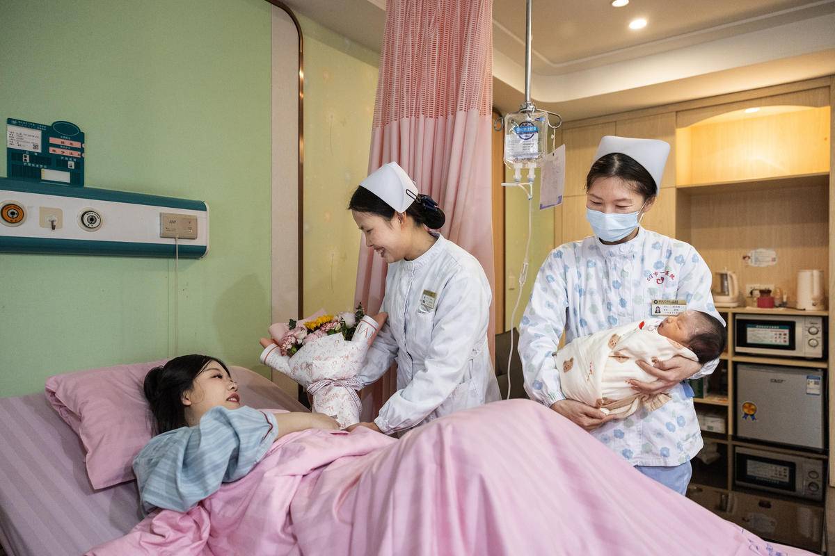 2024年12月22日,在天門市第一人民醫(yī)院產(chǎn)科病房,產(chǎn)科護(hù)士給新生兒媽媽送鮮花。 (湖北日報全媒記者 任勇 通訊員 熊文婷 江文馳 攝)
