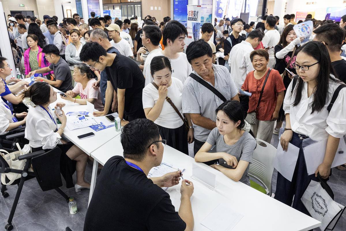 武漢市漢陽區(qū)“職等你來”夏季招聘會,上千名大學(xué)生求職者到場應(yīng)聘?!。ê比請笕接浾摺∪斡隆⊥ㄓ崋T 黃璜 劉虎成 攝)