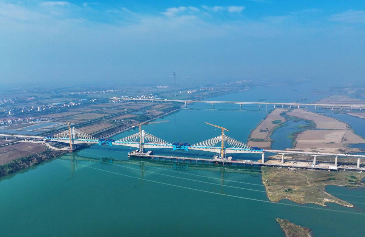 2024年10月30日上午,襄荊高鐵宜城漢江特大橋漢江主橋順利完成中跨合龍,標(biāo)志著襄荊高鐵將全面轉(zhuǎn)入無砟軌道和“四電工程”施工階段,為明年全面建成開通奠定基礎(chǔ)。(湖北日報全媒記者田悅 通訊員謝勇 攝)
