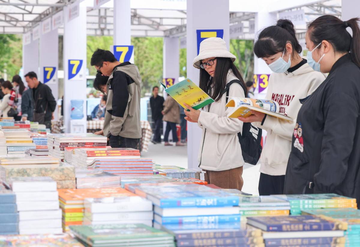 2024年4月8日,市民在書展上閱讀、選購書籍。(湖北日報全媒記者 薛婷 通訊員 李長林 攝)