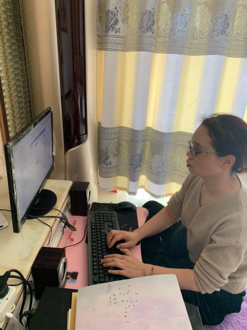 這樣工作的日子持續(xù)了20余天,新的問題又出現(xiàn)了,上小學(xué)的大女兒每天要上網(wǎng)課,只有一部手機(jī)怎么辦?有了問題自己想辦法解決,這是崔雪芳一慣的工作作風(fēng)。居家隔離期剛好已滿,她便委托父母在村子里借一臺電腦,幾經(jīng)轉(zhuǎn)折終于借到了一臺電腦送到她隔離居住的地方。電腦問題解決了,沒有電腦桌沒有坐椅那都是小問題,電視柜上一放,小課桌一擺,席地而坐,這就是她臨時(shí)的辦公場所,每次忙完腿麻得都站不起來。截至目前,咸寧公司在昆侖網(wǎng)站、湖北公司網(wǎng)站及咸寧各媒體上已發(fā)表稿件近50篇。