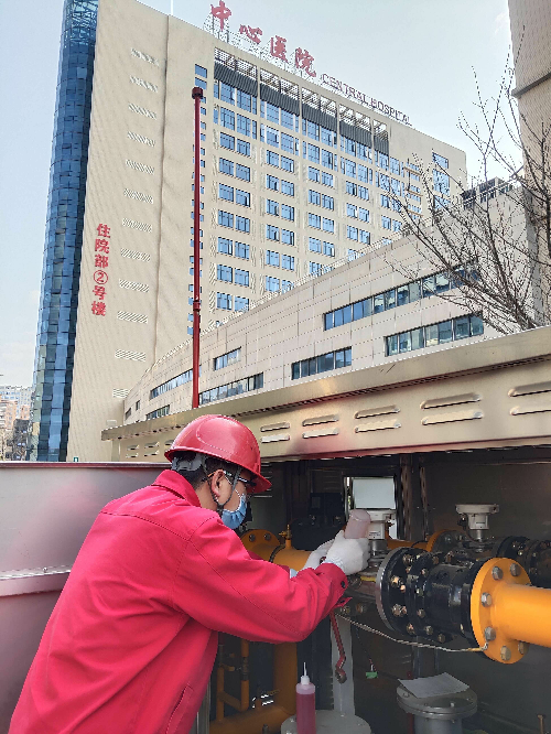“這里是咸寧市中心醫(yī)院食堂,現(xiàn)在點不著火了,急著給院里幾千名職工和病人做早餐,你們能馬上過來幫我們檢查一下嗎?”2月6日凌晨4點30分,聽到電話那頭傳來的報警求助聲,蔡威馬上起身,穿起了中石油標(biāo)志性的紅色工裝,帶著剛叫醒的2名同事,不僅自己做好了嚴(yán)密的防疫措施,還不忘給用戶也備上了口罩,匆匆驅(qū)車趕到現(xiàn)場。