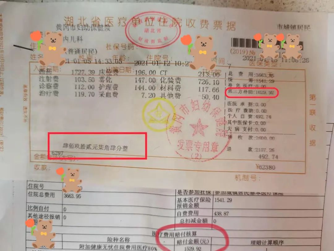 經(jīng)過黃岡丁升旗經(jīng)理多次溝通,黃岡市婦幼保健院窗口落地,院方協(xié)助完善流程,實現(xiàn)出院發(fā)票上顯示第三方賠付的標識,極大提升效率!