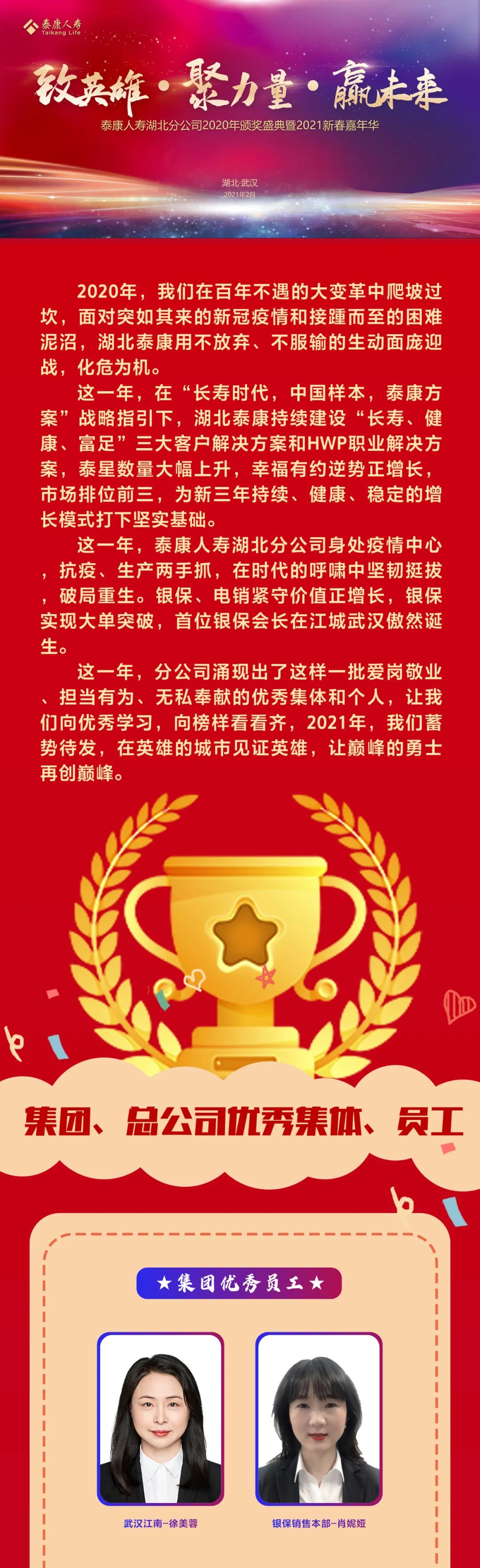 【泰康人壽】湖北分公司2020年優(yōu)秀員工表彰