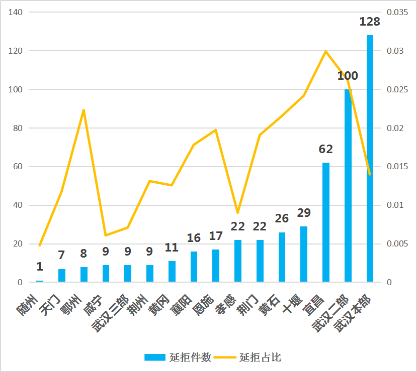 宜昌、武漢二部、十堰、黃石延拒保單占比超2%。