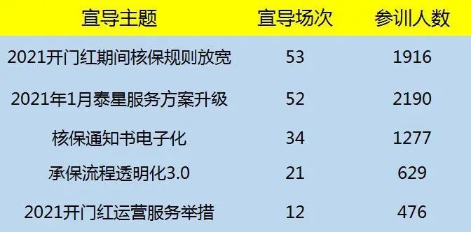 2021年1月核保走一線涉及多個主題,其中宣導(dǎo)場次排名前五的主題為: