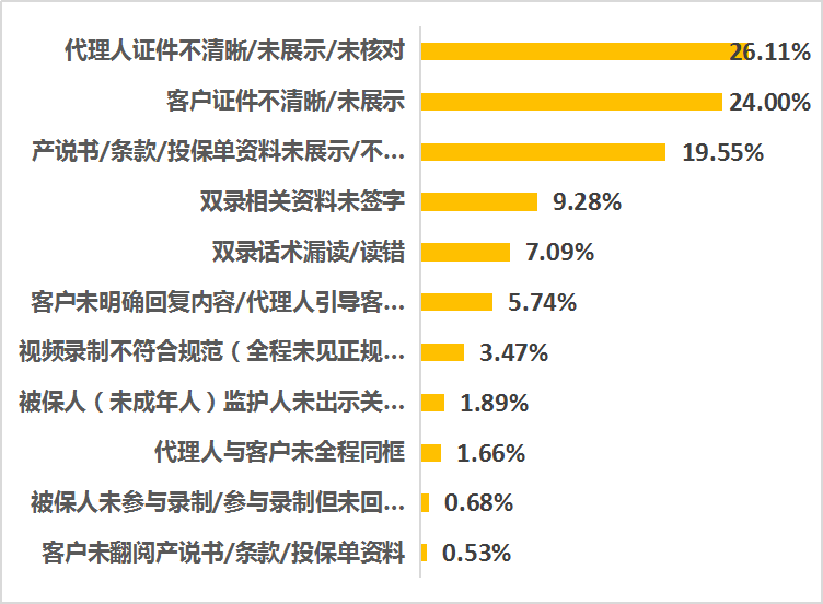 1月全省質(zhì)檢雙錄保單問題共1325條,主要問題為代理人/客戶證件展示不清晰及雙錄資料展示不清晰,請加強宣導(dǎo)錄制要求。請各機構(gòu)運營部關(guān)注重點保單,重點代理人給予專項指導(dǎo)。