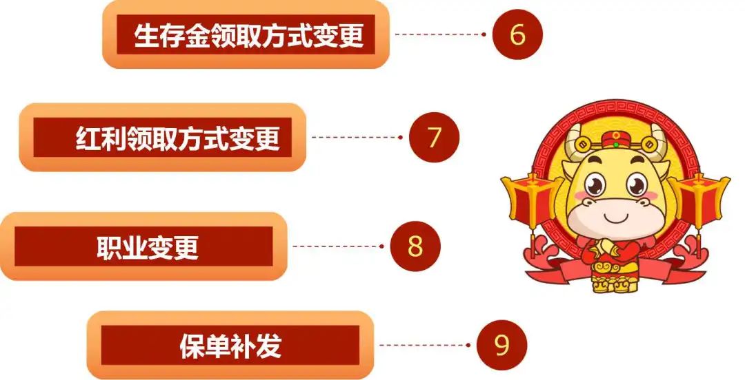 ? ? 選擇需變更的項(xiàng)目--“點(diǎn)擊進(jìn)入”--選擇需變更的保單--按頁面要求錄入信息--點(diǎn)擊下一步--確認(rèn)無誤提交。