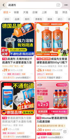 網(wǎng)購平臺(tái)管道疏通劑截圖