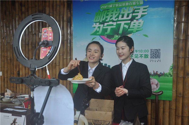 “天宇蕓香香菇體型飽滿,無添加無污染,營養(yǎng)高更健康。原價15.9元的干香菇,現(xiàn)在秒殺價8.8元,數(shù)量有限,需要的寶寶們迅速搶購哦……”近日,咸寧市郵政分公司組織開展2021年郵政農(nóng)品基地首場線上直播活動,傾情為家鄉(xiāng)的土特產(chǎn)品代言“吆喝”。