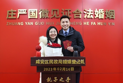 咸寧網(wǎng)訊(記者 陳詩傲 全楨)昨天是2月14日情人節(jié),不少情侶都選擇在這一天牽手伴侶,登記領(lǐng)證,咸安區(qū)民政局婚姻登記處迎來今年首個領(lǐng)證“小高峰”。