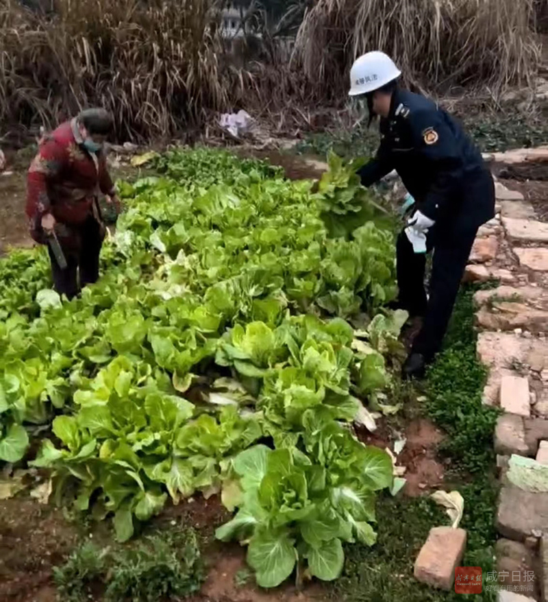 城管執(zhí)法隊員清理菜地,幫助居民采摘蔬菜